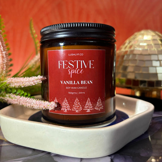 Festive Spice Vanilla Bean Glass Jar Soy Wax Candle