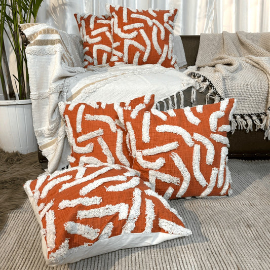 Terracotta Sunburst Ruffle Cushion Cover – Rust & Gold