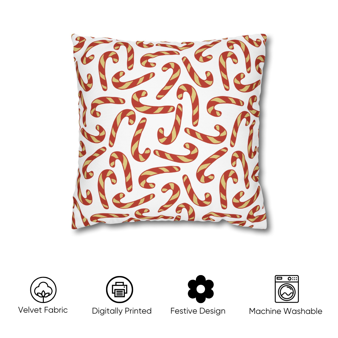 Candy Cane Velvet Chirstmas Cushion Cover Set of 5