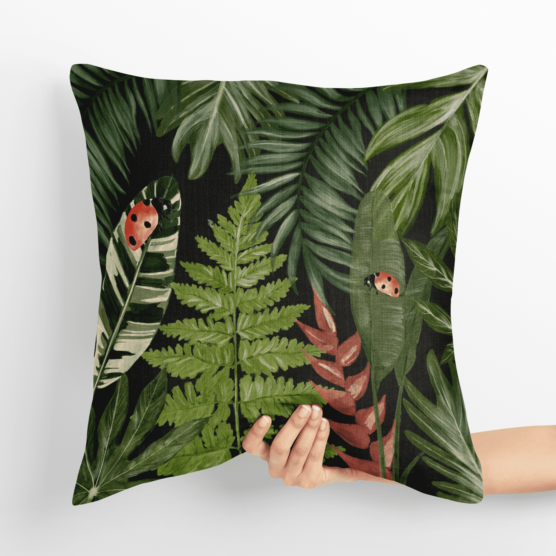 Transform your home with the "Our Lady Beetle Night and Bliss Banana" Cotton Canvas Cushion Cover Combo from Lushlyf. This set of five includes the enchanting lady beetle designs and the elegant banana leaf motif.